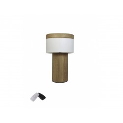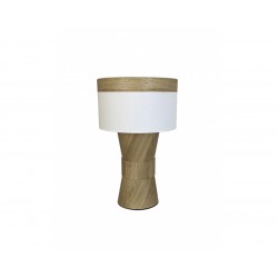 SOBREMESA BAHAMAS MADERA 37CM, hecho en tela, con doble interruptor E-27 independiente, para encender por un lado la base y por otro la parte superior.