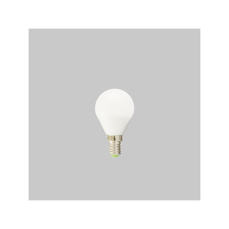 BOMBILLA LED ESFERICA 5W E14 3000K LUZ CÁLIDA, con difusor en cristal opal, tratado para evitar sombras. Consumo extremadamente bajo pero con alto rendimiento y repoducción cromática. Económicas pero fiables, con garantía MASLIGHTING, incluso en usos prolongados.