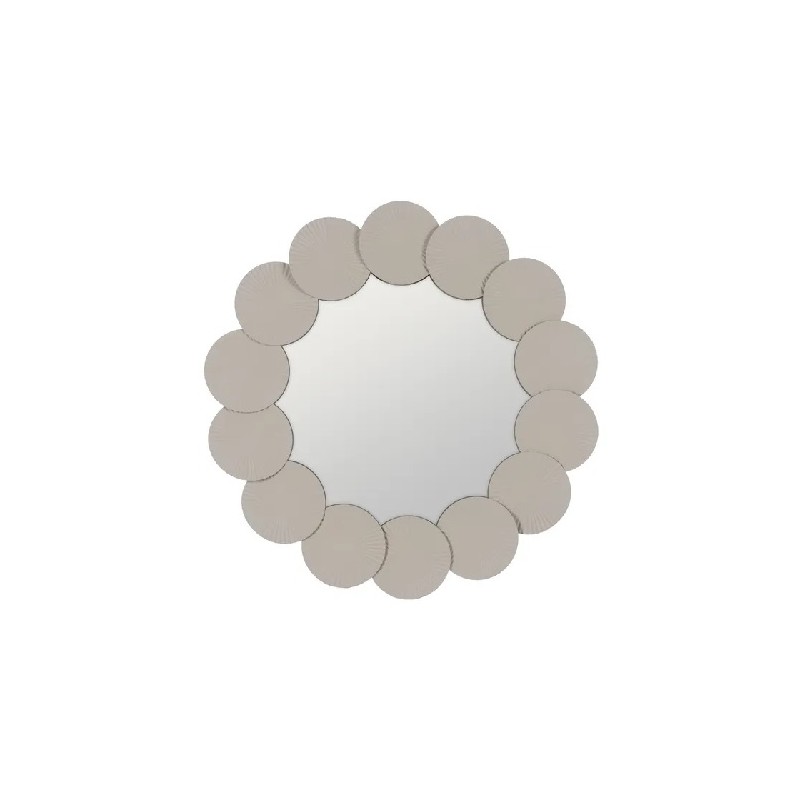 ESPEJO DE PARED REDONDO BLANCO METAL DECORACION CONCHAS. Espejo ideal para decoración, tanto para encima de un mueble o consola, como para cualquier espacio al que quieras dar un toque diferente. Su marco está formado por unas conchas redondas de metal con textura.