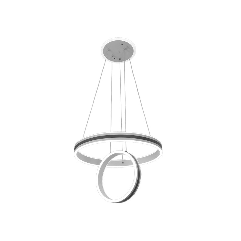 Colgante de la serie ALPES de color GRIS. Este moderno colgante LED está realizado en metal y acrílico. Posee tecnología LED INTEGRADO con 104 watios de potencia, 8320 lúmenes y 3 TEMPERATURAS SELECCIONABLES DE LUZ (3000k, 4000k y 6000k) luz cálida, natural y blanco frío. Viene con MANDO A DISTANCIA incluido y es REGULABLE EN INTENSIDAD. Se caracteriza por su diseño de dos aros de luz resultando un bonito juego lumínico suspendido por cables y muy decorativo, haciéndose el centro de la estancia que ilumina. Sus dimensiones, regulables en altura son de Regx50x50 centímetros