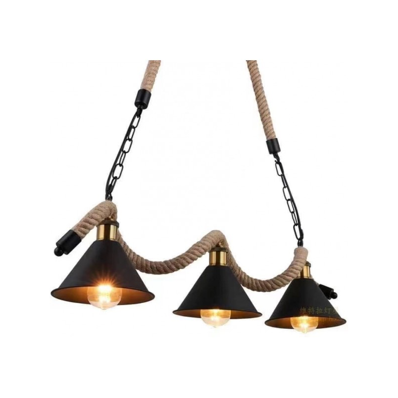 LÁMPARA RÚSTICA DE CUERDA SOGA NEGRO 3 LUCES CON TULIPA PEQUEÑA. IDEAL PARA BODEGAS, ESPACIOS CLÁSICOS O RÚSTICOS O INCLUSO ESTILO INDUSTRIAL