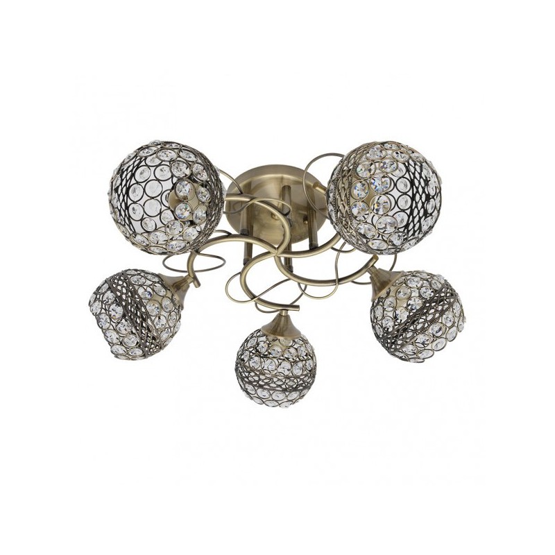Lámpara de cinco luces de la serie LALIBELA, en color CUERO, realizado en metal y cristal. Se caracteriza por su estructura y tulipas de diseño, presenta el detalle de una cenefa de metal calada en sus tulipas. De estilo moderno y elegante, idóneo para ambientes modernos y neoclásicos , también muy afín con el nuevo estilo Vintage, para decorar en salones, dormitorios y salas de estar. Utiliza cinco porta lámparas E14. Bombillas no incluidas. Sus dimensiones son de 22x50x50 centímetros. En esta serie podemos encontrar el sobremesa, aplique, colgante y lámparas de cinco, tres y dos luces, todas ellas también en color cromo.