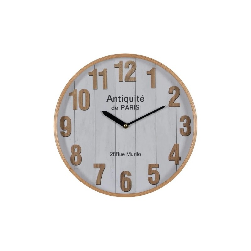 RELOJ DE PARED REDONDO BLANCO-NATURAL 32 CM. Su diseño inspirado en el estilo nordico, puede ser el punto focal de un salón, cocina o del espacio donde desees colocarlo.