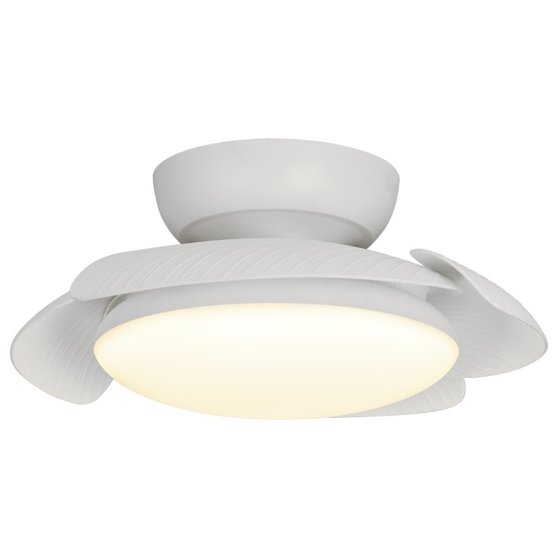 VENTILADOR DE TECHO SILENCIOSO CON LUZ ALOHA BLANCO MADERA. Con aspas que se abren.
